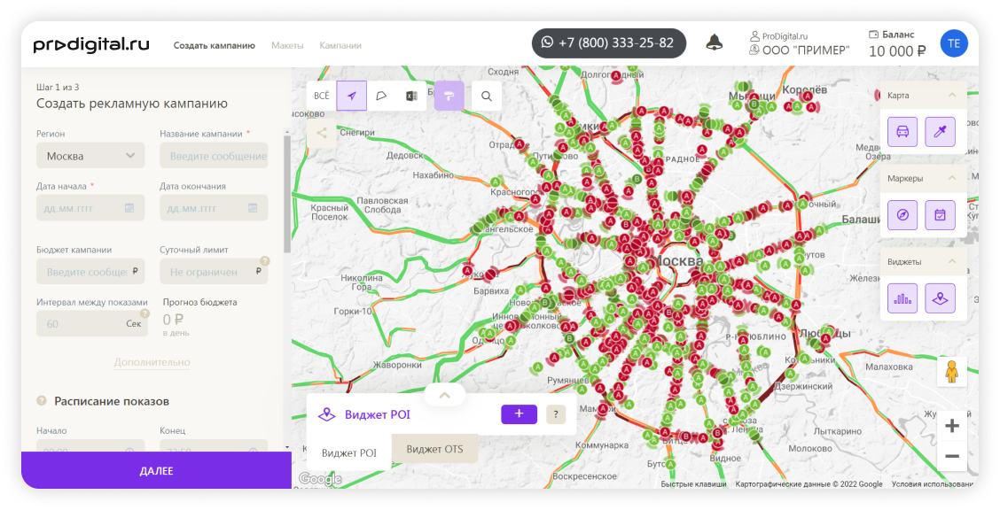 Кроме того, сейчас для новых пользователей действует акция: мы удваиваем первое пополнение счета до 10 000 рублей, чего достаточно для проведения полноценной тестовой рекламной кампании.